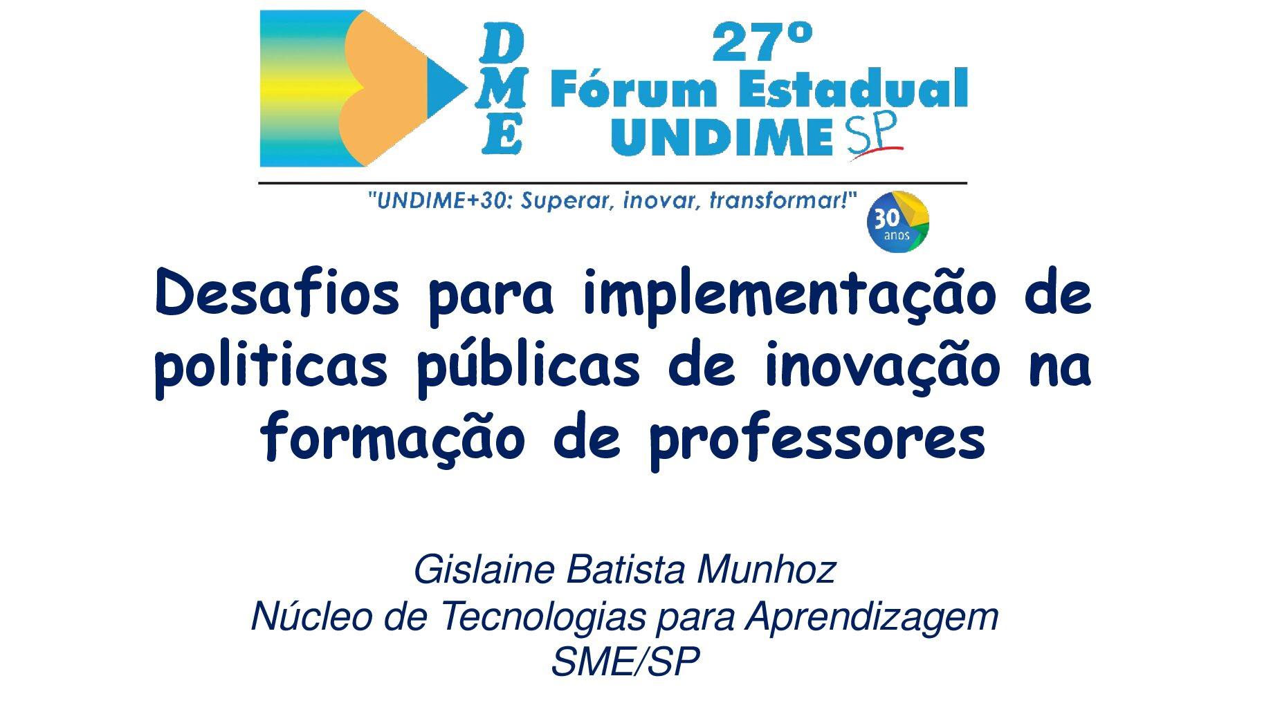 application/pdfApresentação – Alessio Costa Lima – Presidente da UNDIME Nacional.pdfapplication/pdfFinanciamento da Educação – “Quem paga a conta” – Carlos Eduardo Sanches.pdfapplication/pdfEducação na Primeira Infância – Garantindo Equidade – Claudia Costin.pdfapplication/pdfPrimeira Infância: Cumprimento das Metas do PNE – Mozart Neves Ramos, Instituto Ayrton Senna.pdfapplication/pdfADE Noroeste Paulista – Nasser Marão Filho.pdfapplication/pdfQue planos temos para a Educação da primeira infância nos municípios? – Zilma de Moraes Ramos de Oliveira.pdfapplication/pdfBase Nacional Comum Curricular – Maria Inês Fini, Presidente INEP.pdfapplication/pdfAs avaliações externas e a nova Base Base Nacional Comum Curricular – Alícia Freijo Rodriguez.pdfapplication/pdfBase Nacional Comum Curricular – David Boyd.pdfapplication/pdfInovação e Técnologia para Educação – Lucia dellagnelo.pdfapplication/pdfEducação para o Século 21 – Currículo, Práticas Pedagógicas e Ambiente da Escola – Anna Penido.pdfapplication/pdfDesafios para implementação de politicas públicas de inovação na formação de professores – Gislaine Batista Munhoz.pdfapplication/pdfTransformando o ensino-aprendizagem pelas múltiplas mídias – Maria Regina dos Passos Pereira.pdfapplication/pdfAcertando na prestação de contas – José Silvio Graboski de Oliveira.pdfapplication/pdfAcertando na prestação de contas – Alexandre Dutra – Tribunal de Contas do Estado de São Paulo.pdfapplication/pdfControle do gasto mínimo em educação e do cumprimento das metas e diretrizes do PNE – Dra. Élida Graziane Pinto – Procuradora do Ministério Público de Contas do Estado de São Paulo.pdfapplication/pdfImprobidade Administrativa – Controle dos atos do gestor público – Dr. André Vitor de Freitas – Promotor de Justiça – MP/SP.pdf