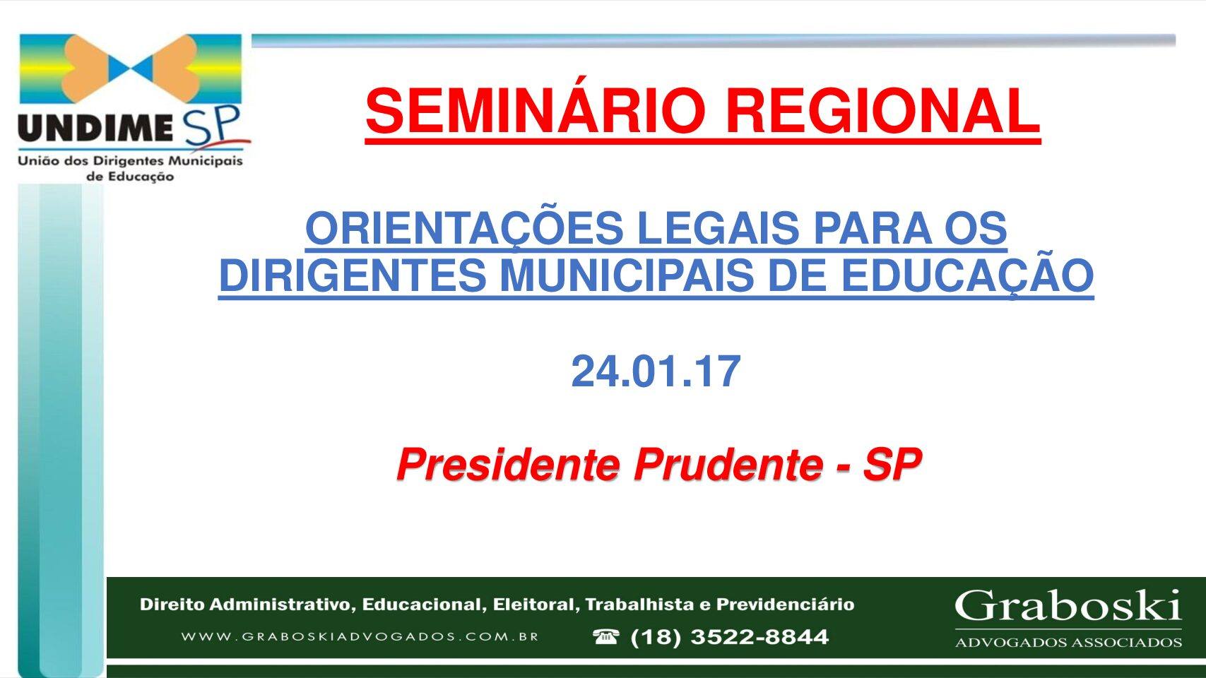 “Seminário Regional” – 24 De Janeiro De 2017 – Presidente Prudente