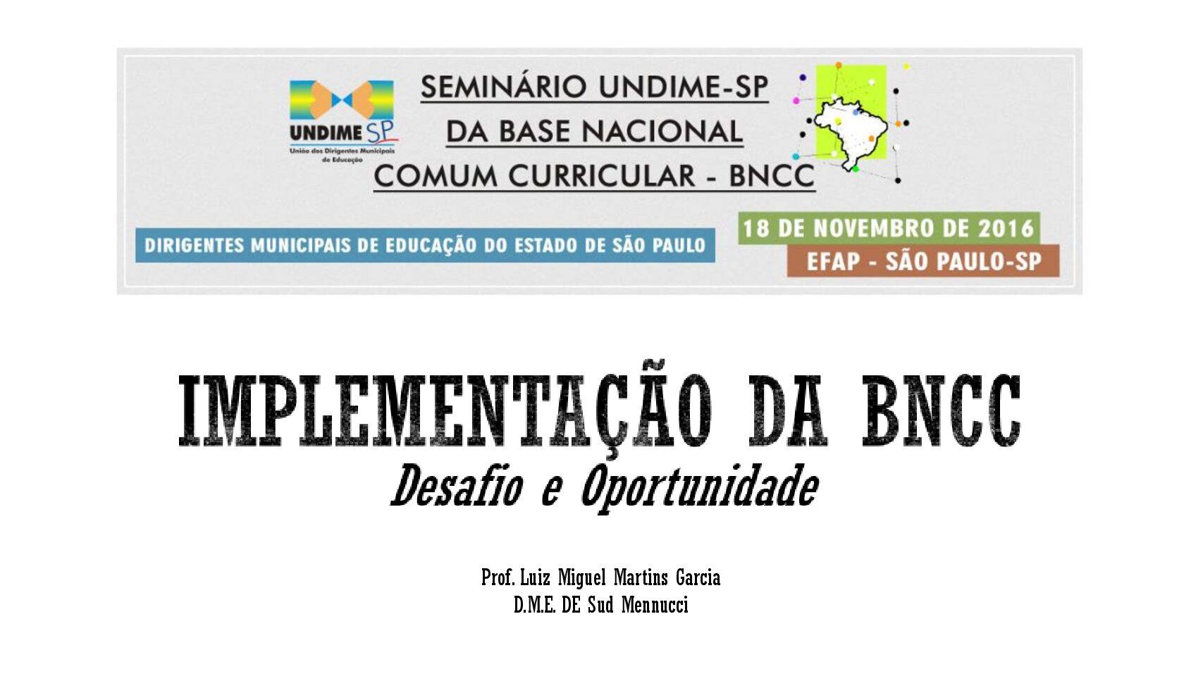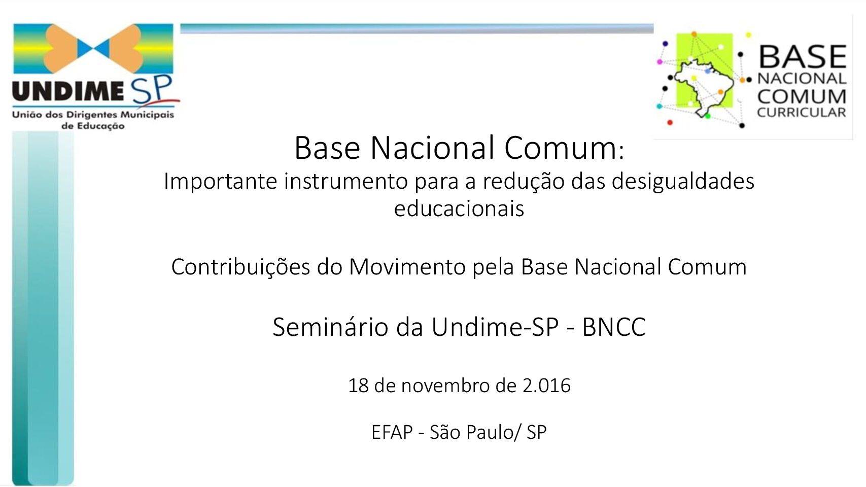 “Seminário Undime-Sp Da “Base Nacional Comum Curricular (Bncc)” – 18 De Novembro De 2016 – São Paulo