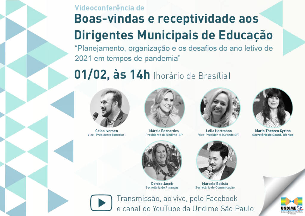 Para receber e acolher os Dirigentes Municipais de Educação, equipes das secretarias, professores e demais membros da comunidade escolar, a Undime São Paulo realizará na próxima semana, no dia 1° de fevereiro, a partir das 14h (horário de Brasília), a primeira videoconferência do ano para dar boas-vindas a todos os educadores paulistas neste início de ano letivo.