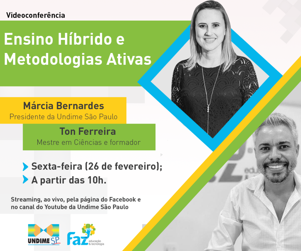 Para tratar do assunto, AMANHÃ, 26, a partir das 10h (horário de Brasília), Undime São Paulo e Faz Educação & Tecnologia farão uma videoconferência com o tema “Ensino Híbrido e Metodologias Ativas”.