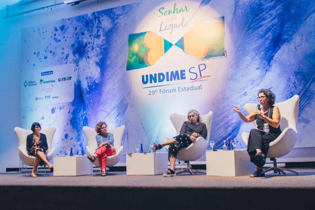 A tarde do segundo dia do 29° Fórum Estadual da Undime São Paulo também foi marcada por momentos de reflexão para o aprimoramento da educação pública municipal. No início do período, uma mesa redonda com a participação de Maria Tereza Perez Soares, do CEDAC, Beatriz Lomonaco, da Fundação Telefônica, e Maria Inês Fini, ex-Presidente do INEP, com a mediação de Anna Pennido, do Instituto Inspirare, debateu a formação dos professores para o monitoramento e avaliação da aprendizagem do aluno.