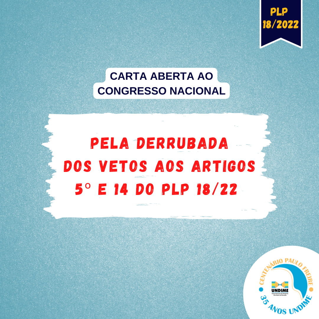 Como é do conhecimento de todos, a Presidência da República apresentou nove vetos ao Projeto de Lei Complementar nº 18, de 2022. Dois, em especial, prejudicam sobremaneira a educação básica e a saúde públicas: os vetos aos artigos 5º e 14 do Projeto de Lei Complementar (PLP) nº 18/22. Tais artigos foram propostos, defendidos e aprovados pelo Congresso, após manifestações de diversas instituições da sociedade civil.