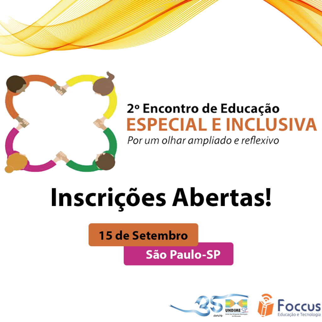 Com o objetivo de retratar a importância e necessidade da Educação Especial e Inclusiva, a equidade no contexto escolar, o desenvolvimento integral de todas as educandas e educandos, o respeito às diferenças, a ação de minorar e erradicar a discriminação, o favorecimento de oportunidades, direitos e deveres, no dia 15 de setembro, a Foccus Educação e Tecnologia, empresa da iniciativa privada, e a Undime São Paulo, realizarão, na UniNove – Campus Vergueiro, em São Paulo, o 2° Encontro de Educação Especial e Inclusiva.