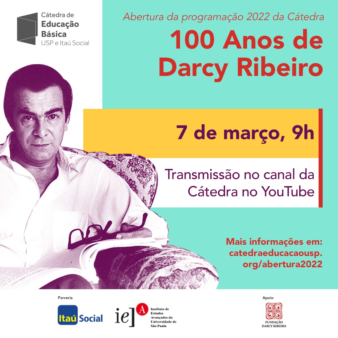 O legado de Darcy Ribeiro (1922-1997) para a educação e a política será tema do evento de abertura da Cátedra Alfredo Bosi de Educação Básica este ano. Antropólogo, historiador, sociólogo, escritor e político, Darcy é celebrado pela sua luta em prol dos direitos humanos e por uma educação de qualidade no Brasil. Em outubro, comemora-se os 100 anos de seu nascimento.