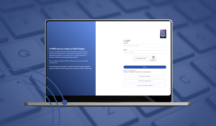 O Fundo Nacional de Desenvolvimento da Educação (FNDE) informou, por meio de ofício, que o sistema PNLD Digital está disponível em https://pnlddigital.fnde.gov.br/login para que Dirigentes Municipais de Educação (DME) que ainda não possuem acesso, realizem seu próprio cadastro, bem como habilitem coordenador(es) e a equipe do livro vinculados à secretaria. Esses dois perfis irão apoiar os titulares das secretarias de educação na gestão do PNLD e no gerenciamento dos perfis de diretores de escolas.