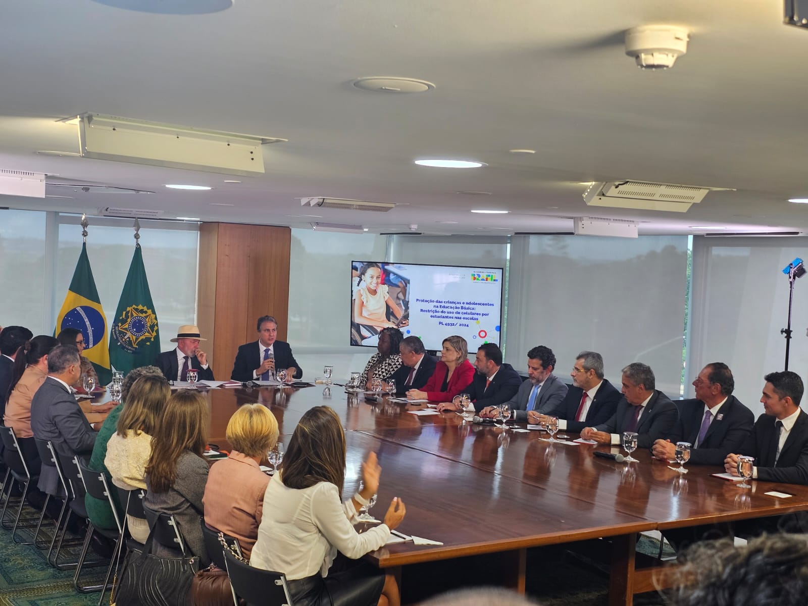 O presidente da Undime e Dirigente Municipal de Educação de Ibaretama/CE, Alessio Costa Lima, esteve em Brasília, na tarde desta segunda-feira (13), para participar da cerimônia de sanção do Projeto de Lei (PL 4932/2024) que dispõe sobre a utilização, por estudantes, de aparelhos eletrônicos portáteis pessoais nos estabelecimentos públicos e privados de ensino da educação básica. O evento aconteceu no Palácio do Planalto e contou com a presença do presidente da República, Luiz Inácio Lula da Silva; do ministro da Educação, Camilo Santana, além de outras autoridades.