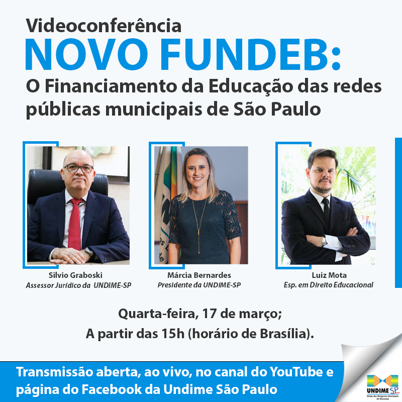 Com o objetivo de respaldar os municípios paulistas sobre a nova Lei Federal que regulamenta o Fundo de Manutenção e Desenvolvimento da Educação Básica e de Valorização dos Profissionais da Educação, na próxima quarta-feira, 17, a partir das 15h (horário de Brasília), a seccional paulista da UNDIME fará uma videoconferência para debater o Novo Fundeb, fundo que financia a educação básica brasileira.
