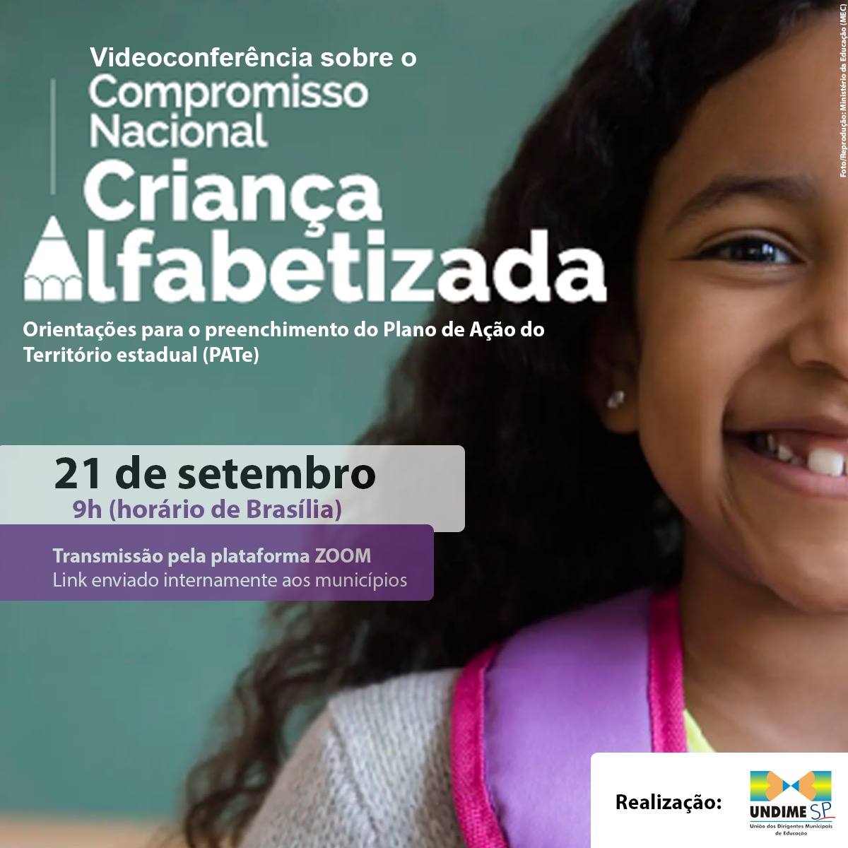 Nesta quinta-feira, 21 de setembro, às 09h (horário de Brasília), a Undime São Paulo promoverá, de forma virtual, uma conferência para apresentar as “Orientações para o preenchimento do Plano de Ação do Território estadual (PATe), pelos municípios, do Compromisso Nacional Criança Alfabetizada (CNCA).